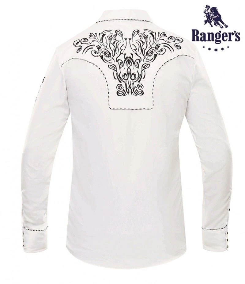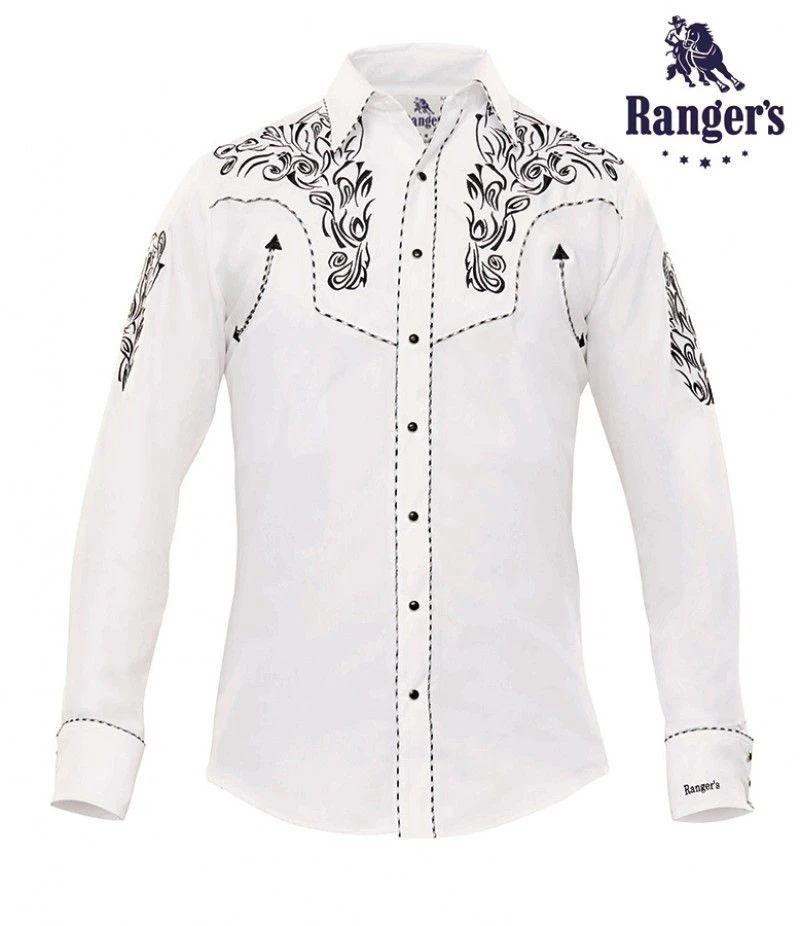 Camisa Cowboy Blanca Con Bordado Negro Ranger’s Para Hombre