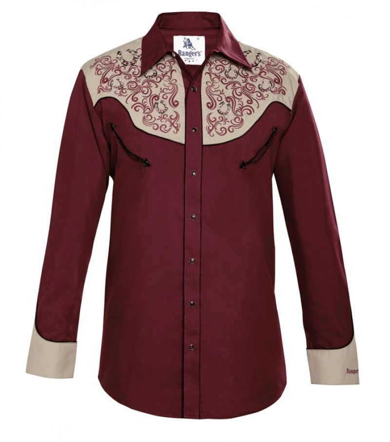 - Especialmente para quienes disfrutan de la monta western, aunque el atractivo es considerable para todo cowboy que se precie, este fabulosa camisa Ranger’s color vino para hombre está ideada para cabalgar a tus caballos de forma elegante o para el apasionado del country y el line dance que quiera darle un vuelco a su manera de vestir.