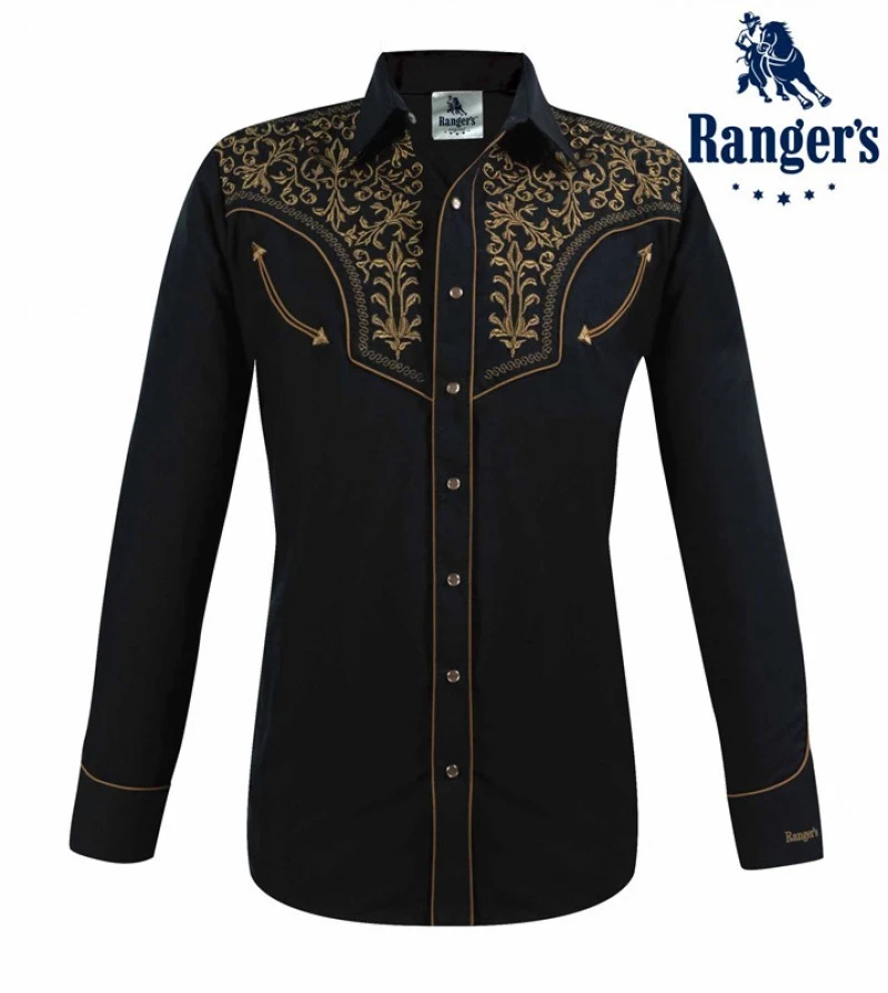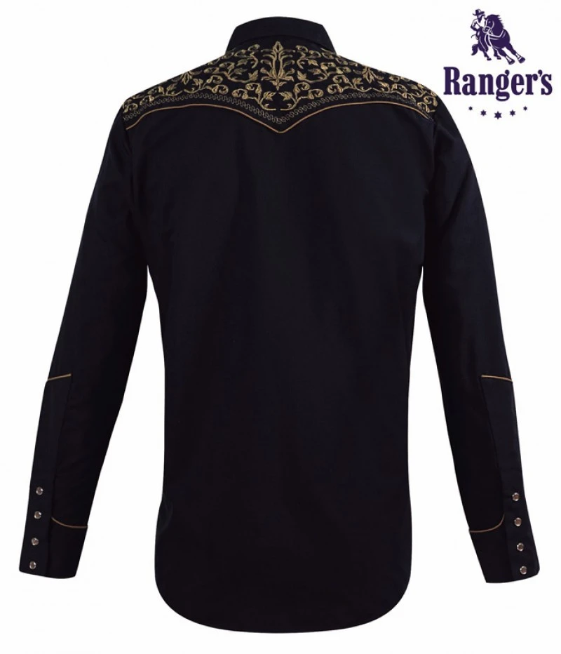 - Desde la celebración más especial al uso diario, vestir al más puro estilo vaquero es optar por la exquisitez, algo que queda patente, por ejemplo, en el trabajado recamado western con flores de lis con que cuenta esta preciosa camisa cowboy negra para hombre de Ranger’s, tanto en el pecho como en la espalda, para que no le quites el ojo de encima ni un solo instante.