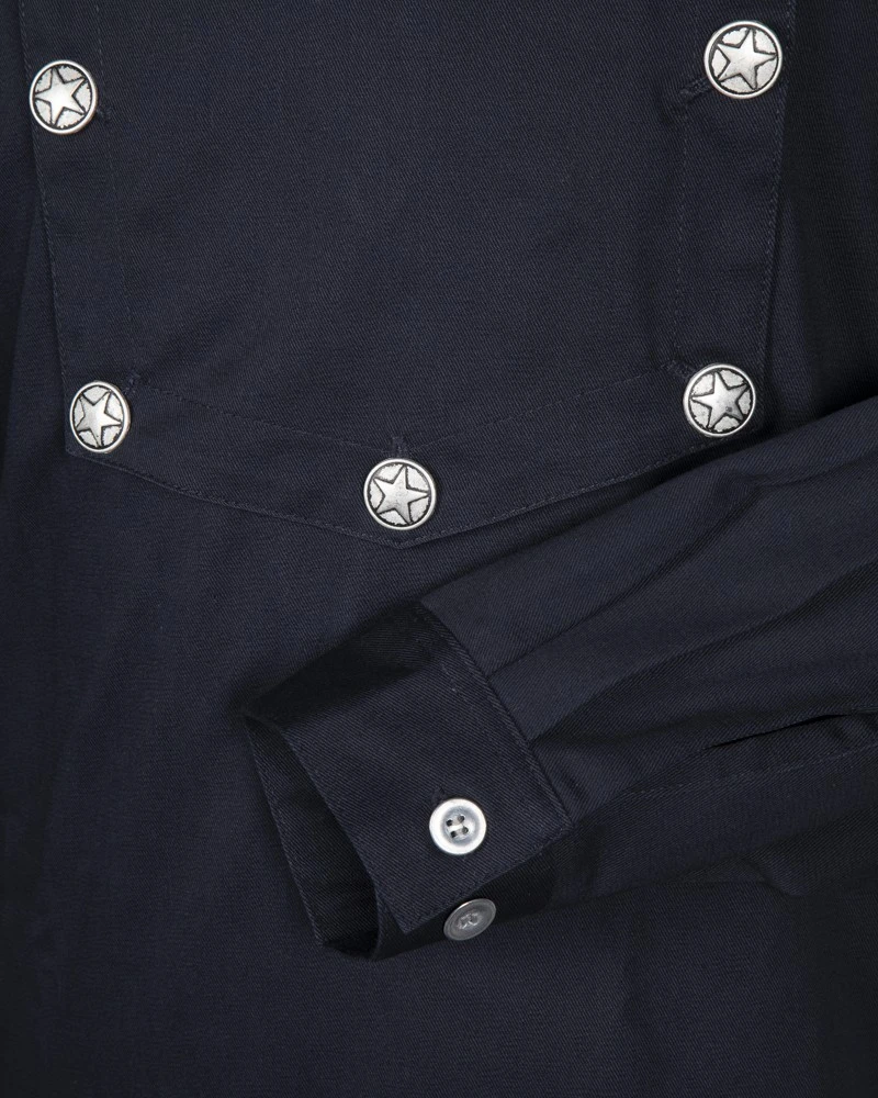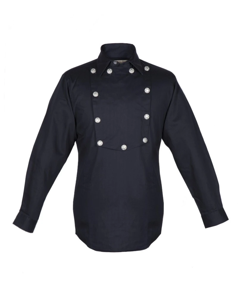 - Llevando esta estupenda camisa western con peto frontal color negro seguro que te confundirán con un auténtico pistolero cowboy, ya que se trata de una prenda estrechamente relacionada con el mundo vaquero, pudiendo ser utilizada para recreaciones relacionadas con películas del Oeste o de la Guerra Civil Americana, espectáculos western, obras de teatro o rodajes, disfraces de cowboy o también como artículo de coleccionista.