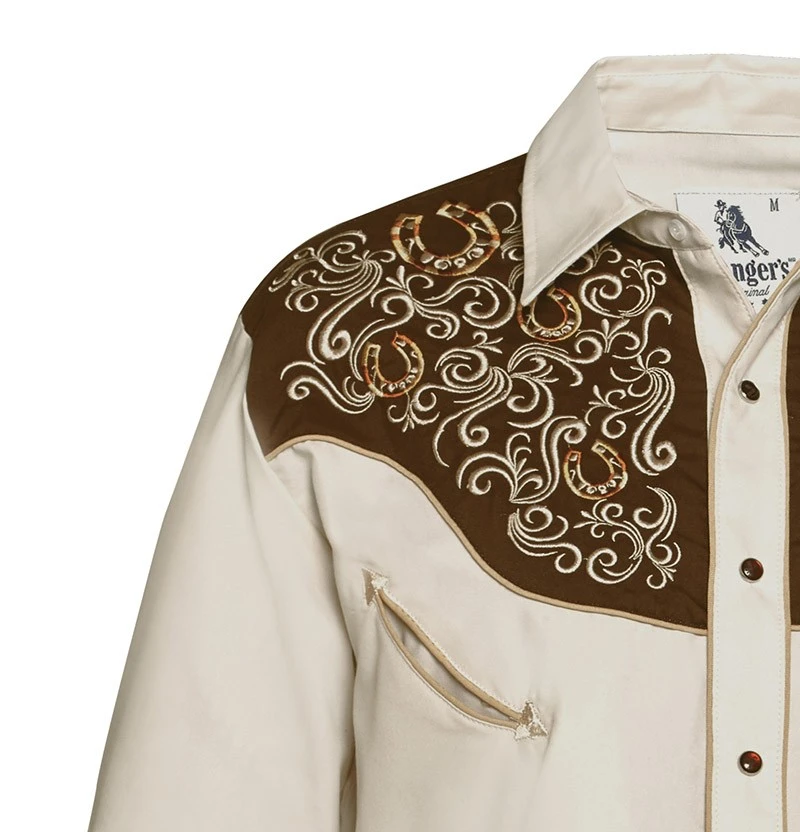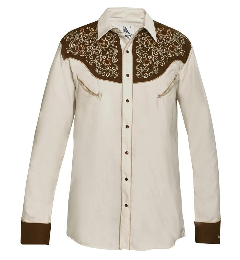 - Especialmente para quienes disfrutan de la monta western, aunque el atractivo es considerable para todo cowboy que se precie, este fabulosa camisa Ranger’s color beige para hombre está ideada para cabalgar a tus caballos de forma elegante o para el apasionado del country y el line dance que quiera darle un vuelco a su manera de vestir.
