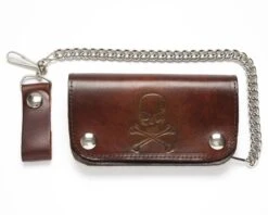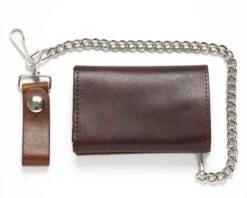 Cartera Cuero Marrón Envejecido Sin Corchetes Visibles Con Cadena