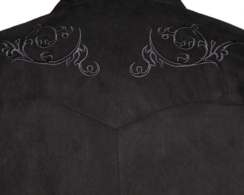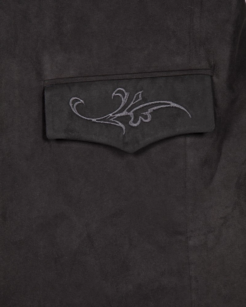 - Al estar compuestas por telas y microfibras más bien finas, este blazer cowboy negro de tela gamuzada con bordados grises en espiral de estilo vaquero en la parte frontal y trasera, con dos grandes bolsillos en la parte inferior tambien con bordados en las solapas, se puede llevar durante todo el año, en celebraciones especiales como bodas western, exhibiciones de country y line dance, conciertos, o incluso fuera del mundo vaquero combinado con otro tipo de prendas, algo que habla muy bien de su versatilidad.