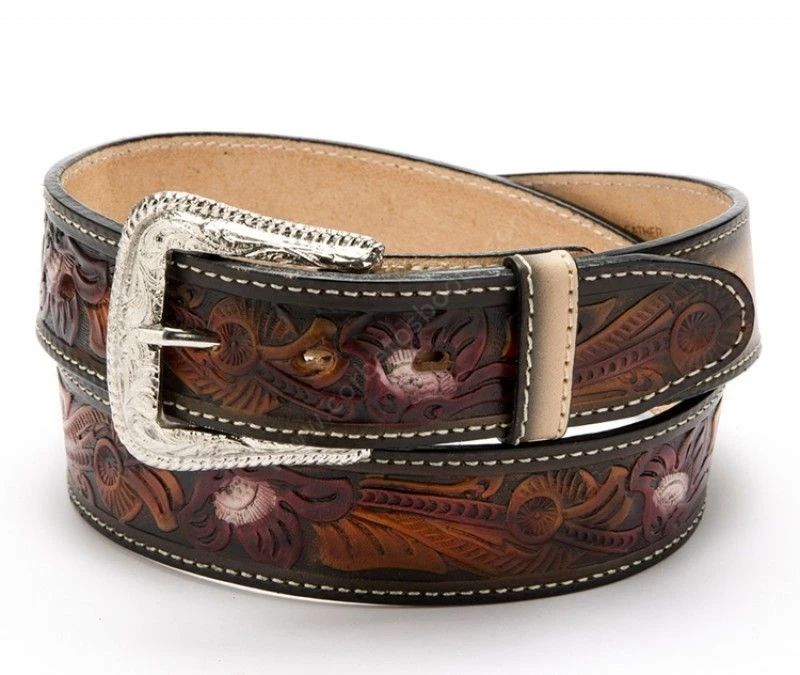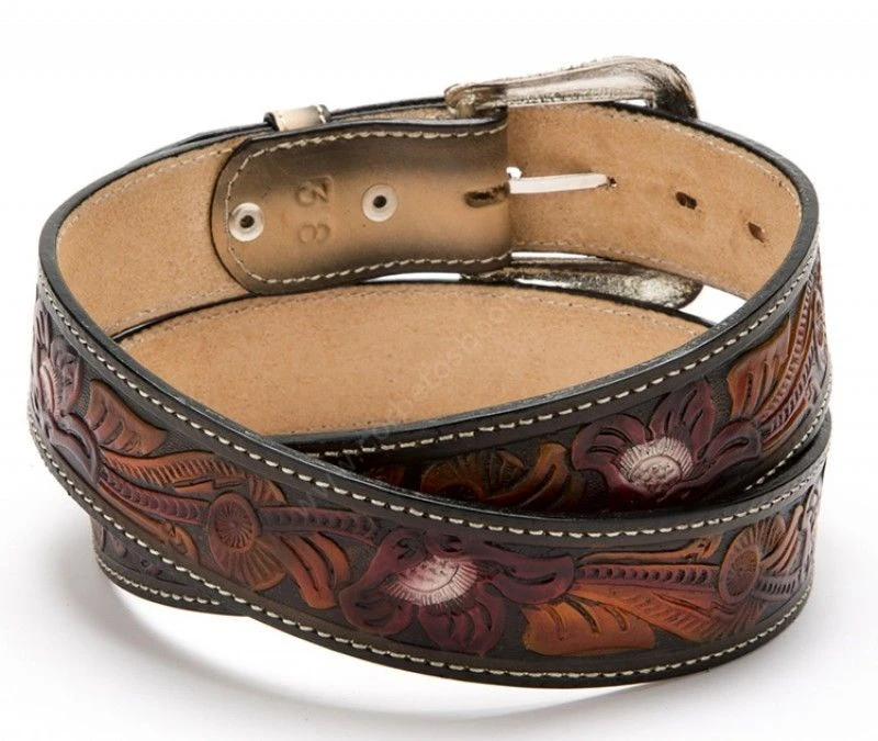 Cinto De Cuero Grabado Multicolor Con Filigranas Florales Estilo Vaquero