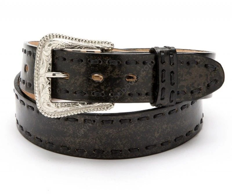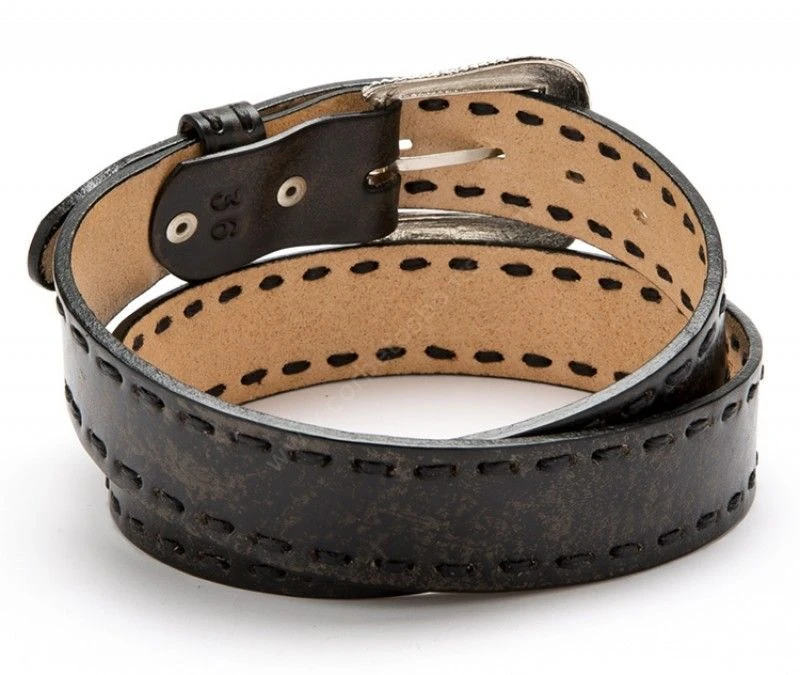 - Este modelo hecho en auténtico cuero vacuno color gris de ligero aspecto desgastado y pasados laterales también de cuero es una gran opción si buscas un cinturón liso con un toque cowboy que combine con tus pantalones tejanos favoritos.