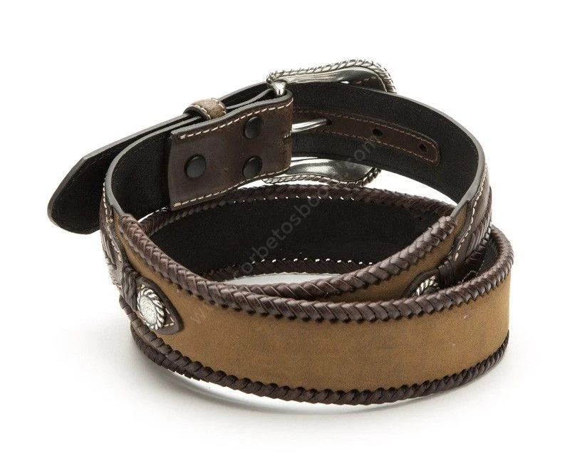 Cinturón Western Nocona Piel Engrasada Marrón Con Pasado Cuero