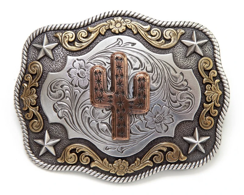 Hebilla Cowboy Nocona Cactus En Relieve Y Grabados Western Bicolor