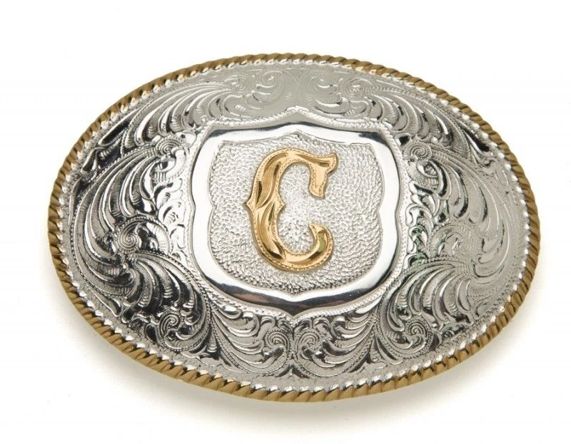 - Disfruta de esta fantástica hebilla western chapada en plata y bronce con la inicial C en el centro de la marca Crumrine Silversmiths, ¡una verdadera joya hecha en México!