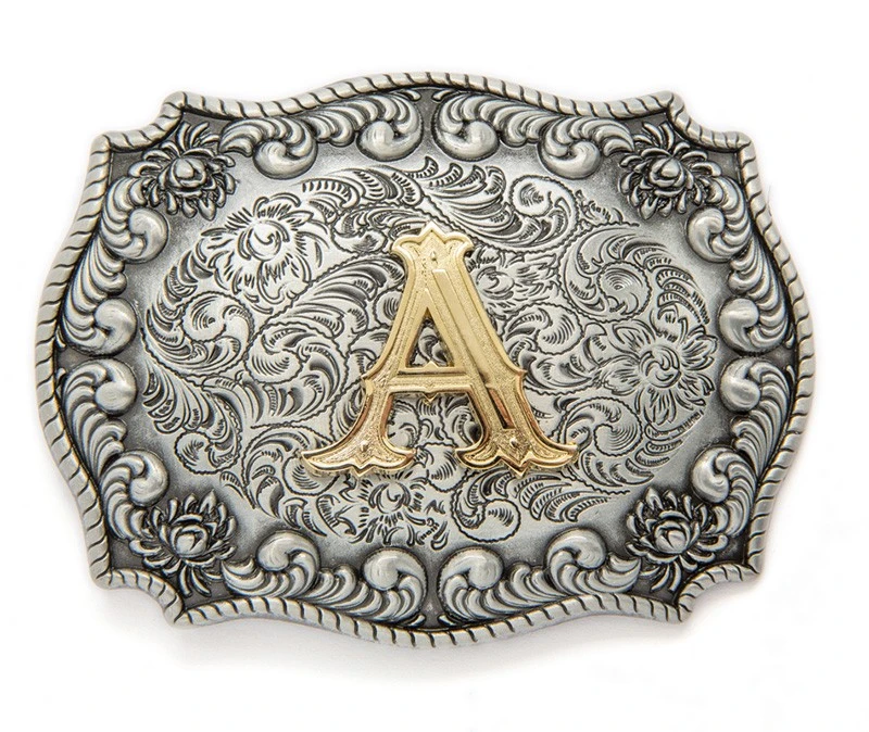 - Personalizar tu cinturón de forma diferente, con la inicial de tu nombre y/o apellido, ya es posible a muy buen precio llevando esta fantástica hebilla de aspecto envejecido con grabados de estilo cowboy y la letra A en relieve dorado.
