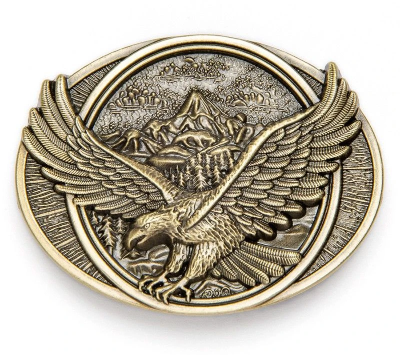 Hebilla Ovalada Para Cinto águila Sobre Fondo Valle