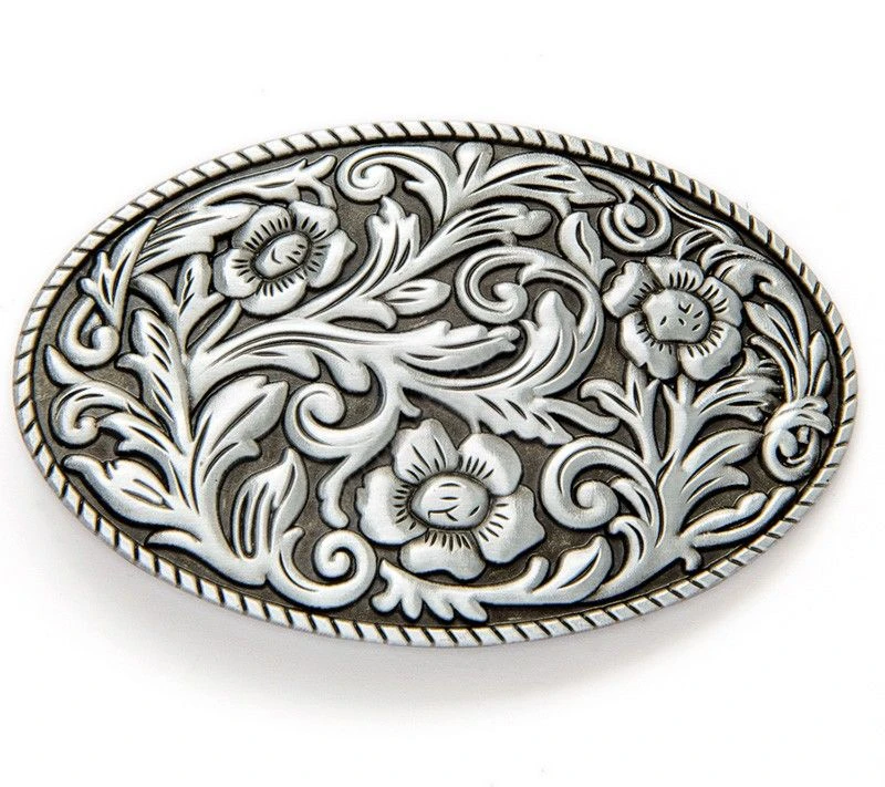 Hebilla Plateada Look Vintage Con Flores En Relieve Y Esmaltado