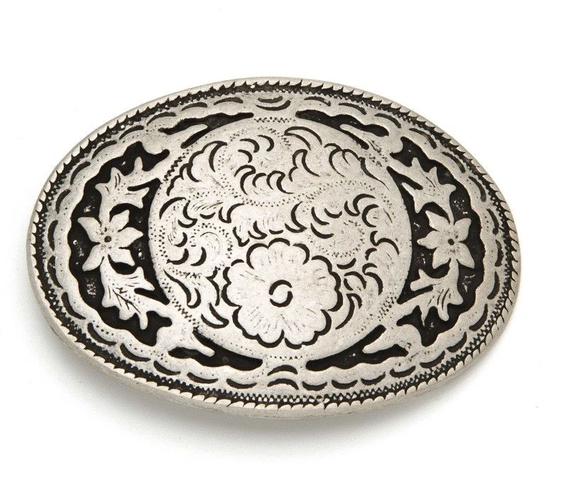 Hebilla Plateada Look Vintage Con Flores En Relieve Y Esmaltado