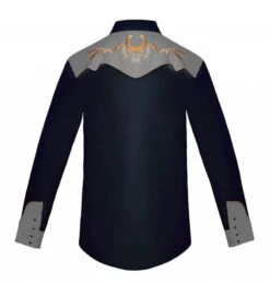 Camisa Western Azul Marino Hecha En México Con Bordado Enlazado Blanco