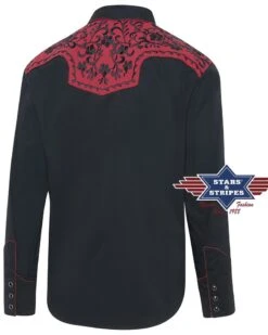 Camisa Charra Mexicana Para Hombre Stars & Stripes Con Canesú Rojo Y Flores Negras