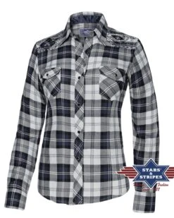 Camisa Cowgirl A Cuadros Azules Y Blancos Talle Ajustado Con Bordado Indio Americano