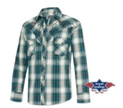 Camisa Cowboy Rayas Turquesa Y Cuadros Arena Para Hombre Manga Larga Y Corta