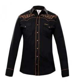 Camisa Negra Estilo Country Ranger’s Para Hombre Con Bordado Marrón Flor De Lis