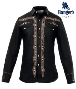 Camisa Ranger’s Vaquera Para Hombre Negra Con Recamado Blanco