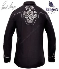 Camisa Negra Ranger’s Colección Rafael Amaya Bordado Floral Mangas