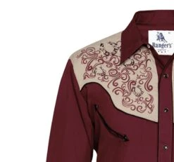 Camisa Mexicana Estilo Rodeo Para Hombre Color Vino Con Bordado Herraduras
