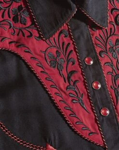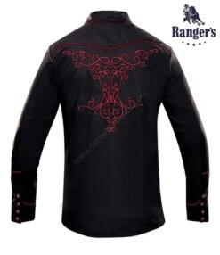Camisa Negra Con Bordados Rojos Estilo Charro Ranger’s Para Hombre