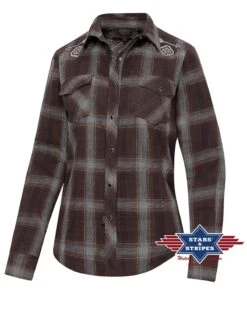 Camisa Marrón A Cuadros Stars & Stripes Para Mujer Con Calavera Búfalo Bordada