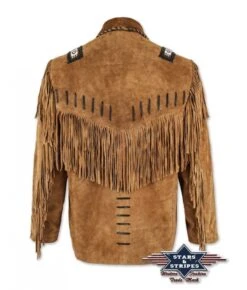 Chaqueta Western Stars & Stripes Piel Girada Marrón Con Flecos