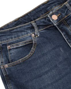 Pantalones Vaqueros Bootcut Color Denim Azul Clasico Costura Amarilla