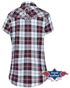 Camisa Country A Cuadros Manga Corta Para Mujer Con Bordado Granate